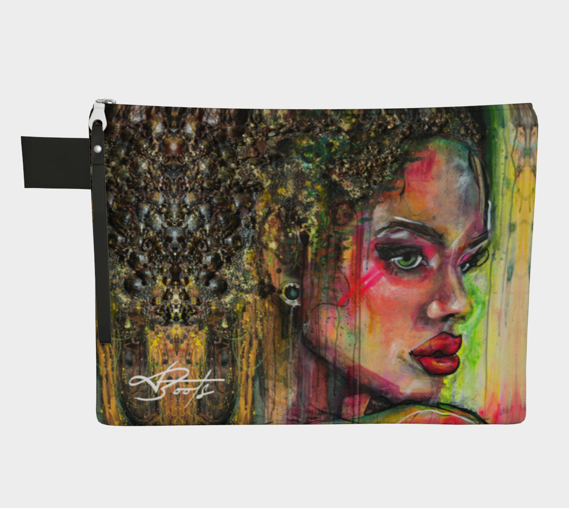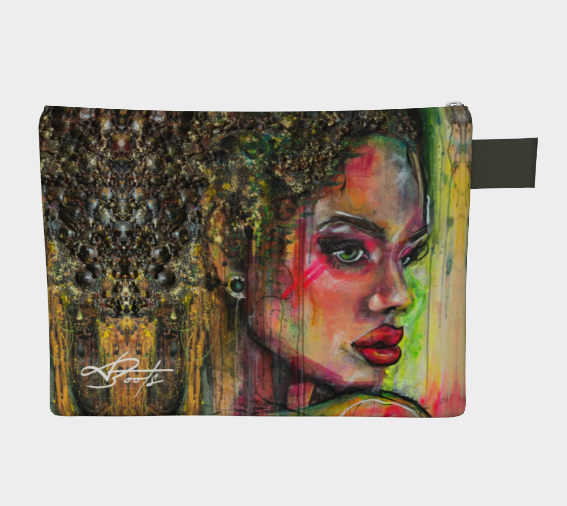 Poches fourre-tout à fermetures, imprimées avec art. Ces poches avec doublure en denim sont proposées en quatres tailles différentes pour ranger et organiser toutes sortes de choses.