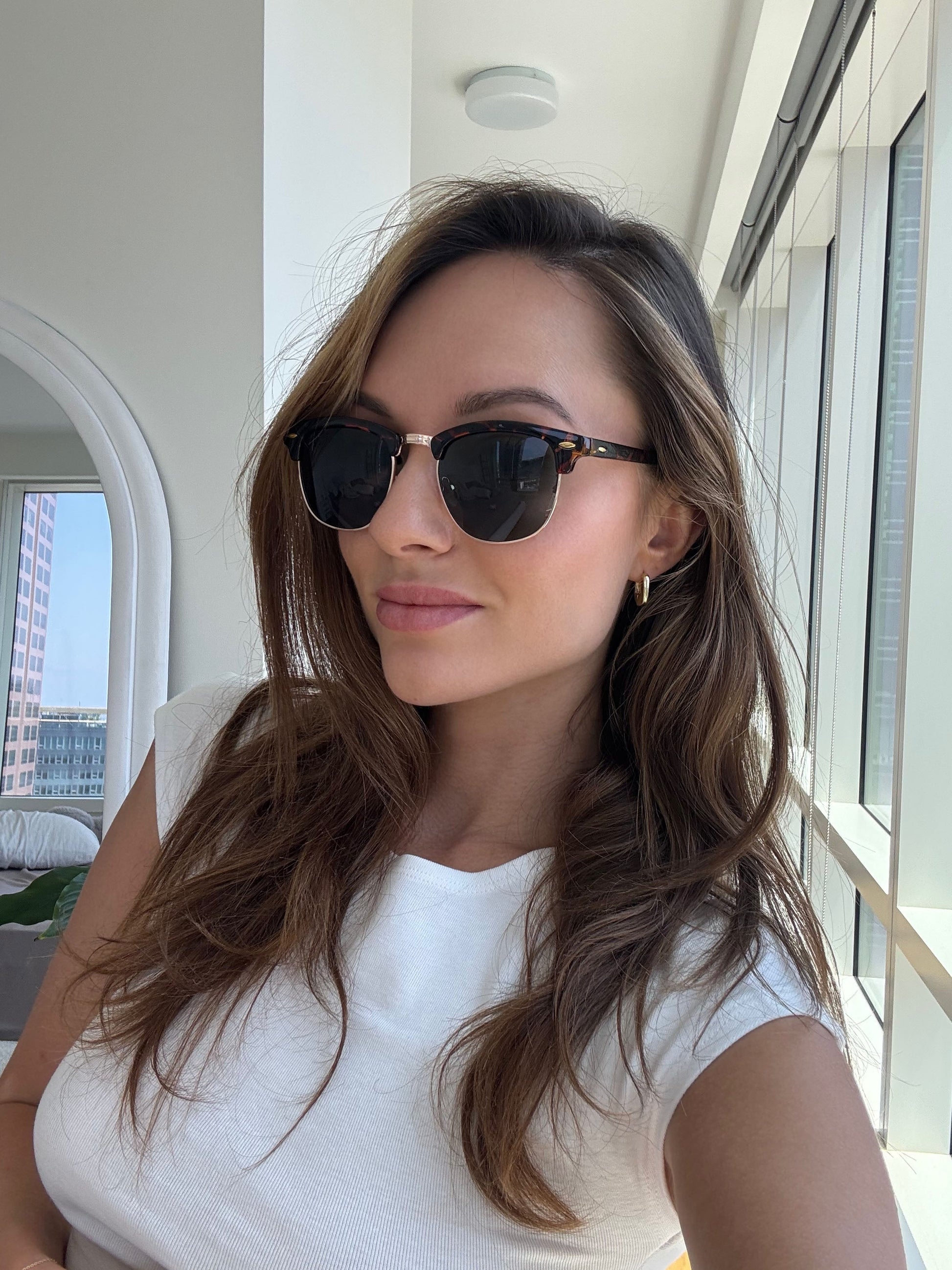 The Hawthorne blends classic sophistication with modern edge, featuring a tortoiseshell browline paired with a sleek gold-tone metal underframe. Its polarized, anti-glare lenses deliver crisp, sun-ready clarity, while the lightweight build offers durable comfort—perfect for elevating everyday style with refined detail.