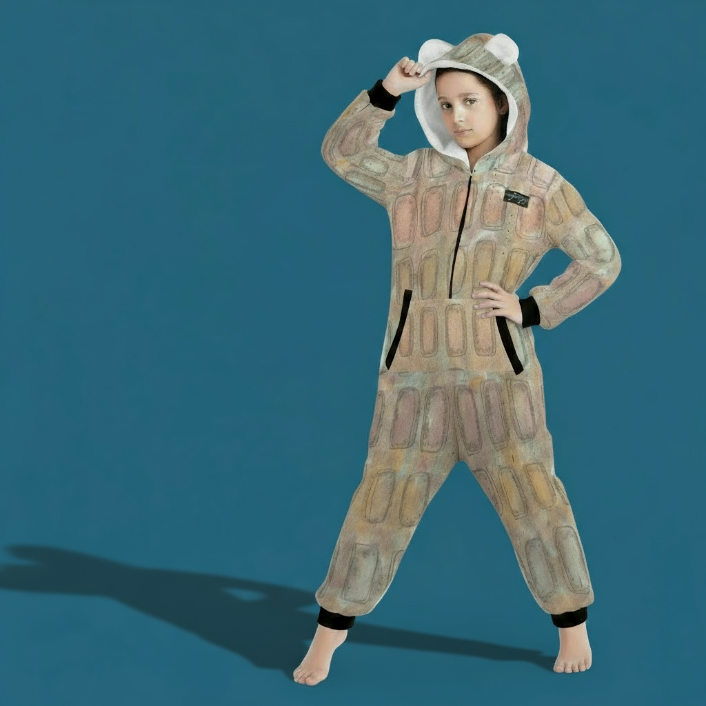 Comprend une capuche intégrée avec d'adorables oreilles d'animaux, une fermeture éclair sur toute la longueur pour un enfilage facile, deux poches latérales pratiques et des poignets et chevilles côtelés pour un ajustement parfait.