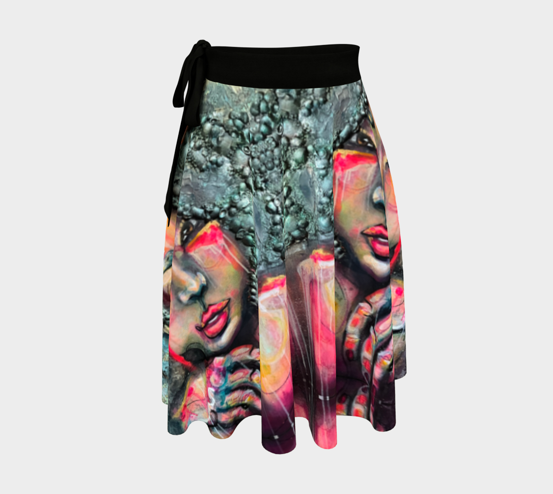 Art imprimé sur des jupes drapées en cercle, en taille unique.