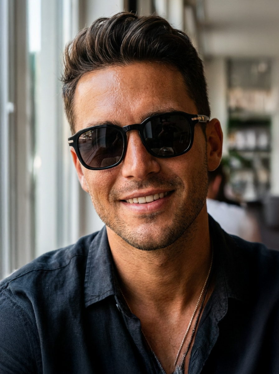 Quinn brings bold, masculine confidence with its strong square silhouette and refined metallic temple accents. Lightweight, durable, and made for everyday wear, it offers scratch-resistant clarity and full UV protection—delivering modern style and dependable performance in every moment.
