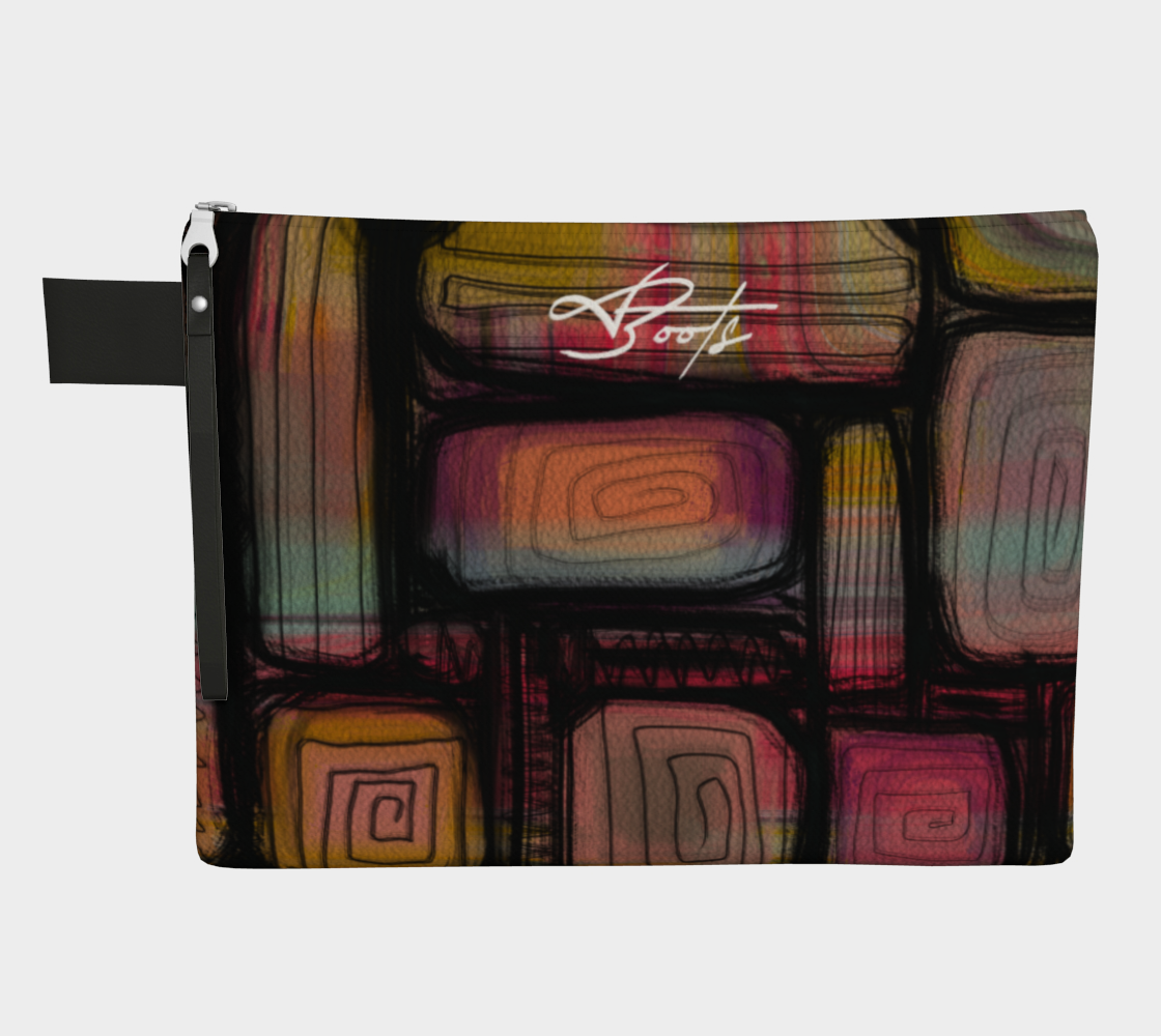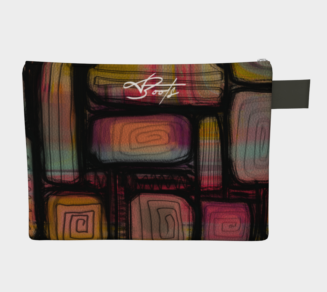 Poches fourre-tout à fermetures, imprimées avec art. Ces poches avec doublure en denim sont proposées en quatres tailles différentes pour ranger et organiser toutes sortes de choses.