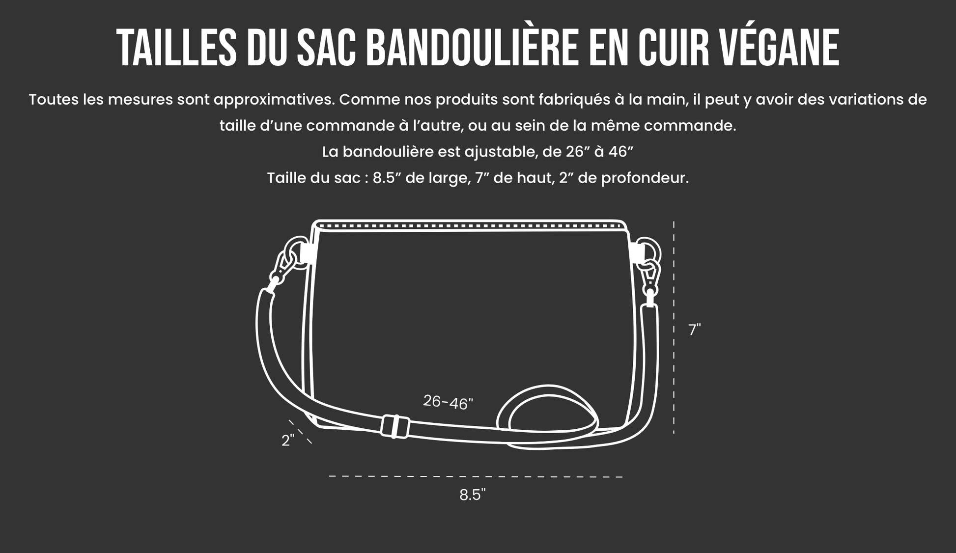• Bandoulière ajustable en noir ou blanc