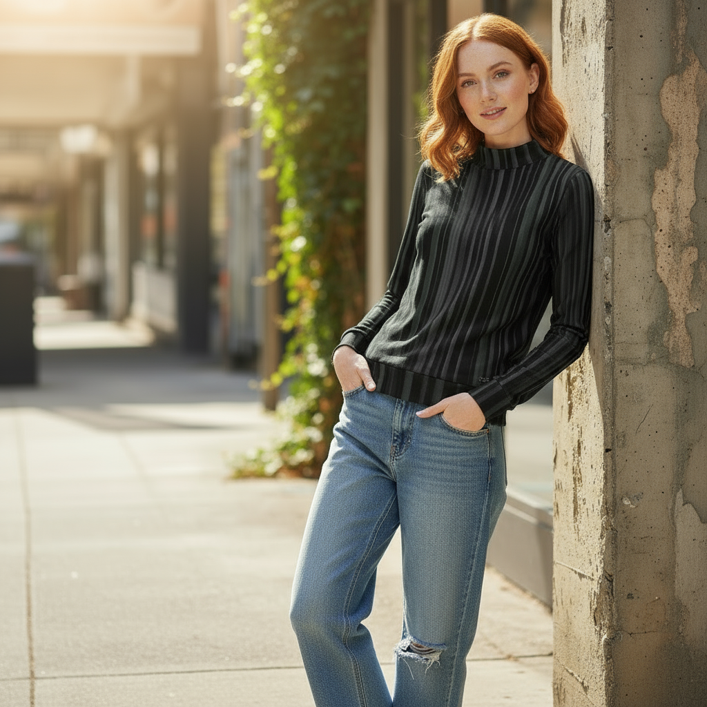 Chandail à col montant imprimé – Élégance et confort réunis 💫 BLACK ROW