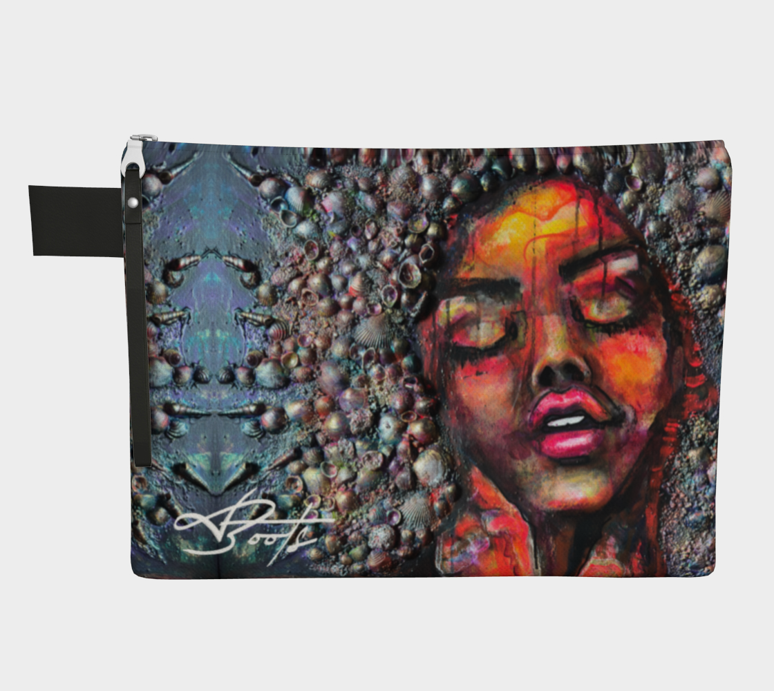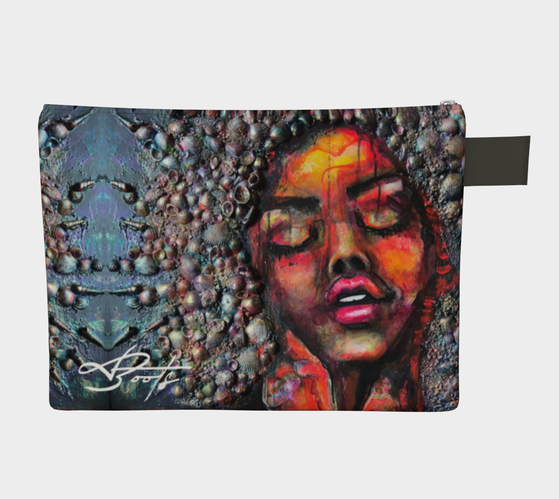 Poches fourre-tout à fermetures, imprimées avec art. Ces poches avec doublure en denim sont proposées en quatres tailles différentes pour ranger et organiser toutes sortes de choses.